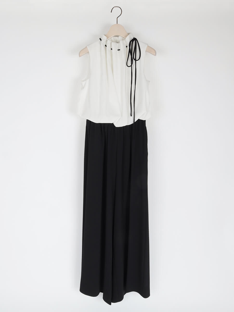 ブラウスとワイドパンツが一体になった、洗練のオールインワン。