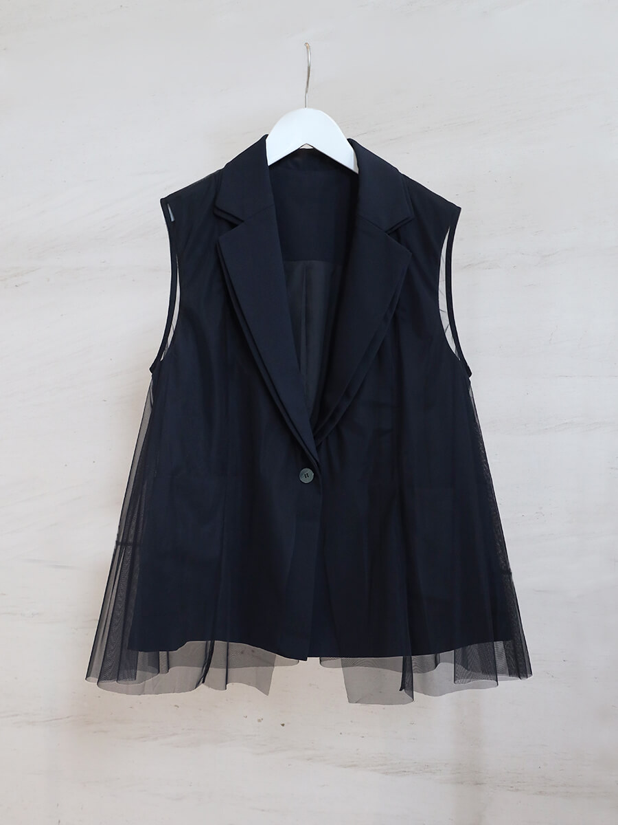 ロングジレは、ハレの日にふさわしい品格を纏える一着。
