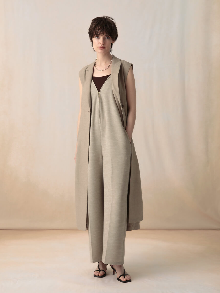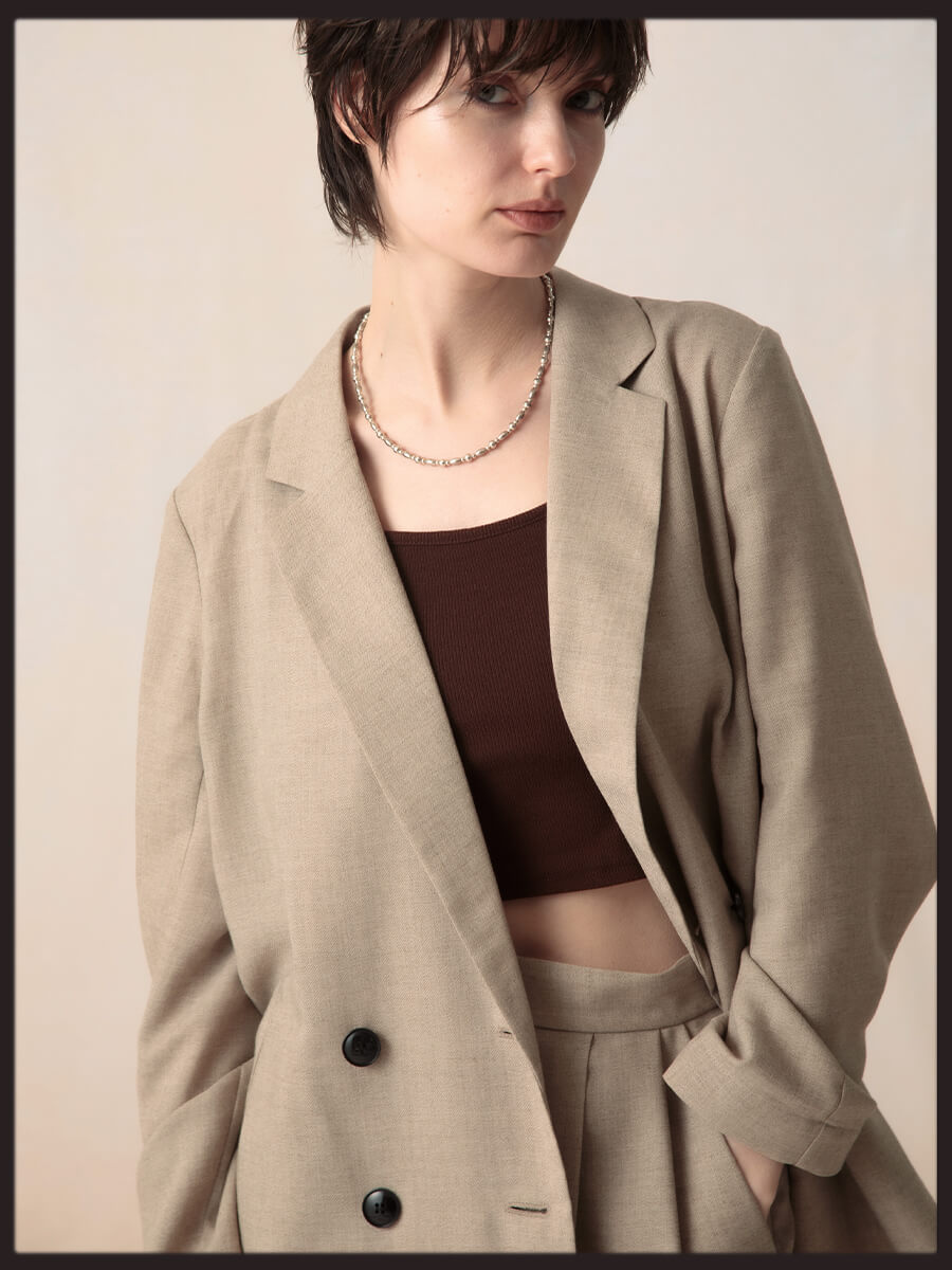 麻にはない美しい落ち感が、カジュアルになりすぎることなく、大人のつややかなスタイルを引き立てます。