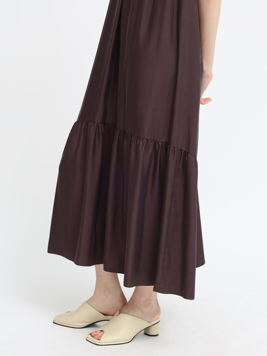 滑らかな肌触りに着心地の良さを実現させたキュプラ混素材のティアードワンピース。華麗なドレープ性が上品になびき大人スタイルへと導きます。スキッパーデザインのヘルシーな抜け感にティアードデザインの女性らしさをダブルで兼ね揃え、華やかさを怠らないギャザー仕立てが質の良さを奏でてくれる絶品です。