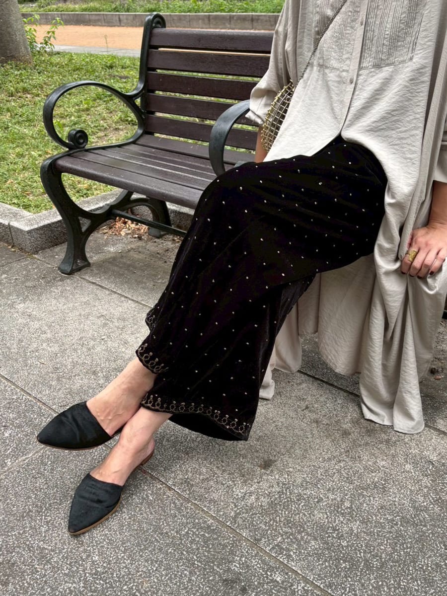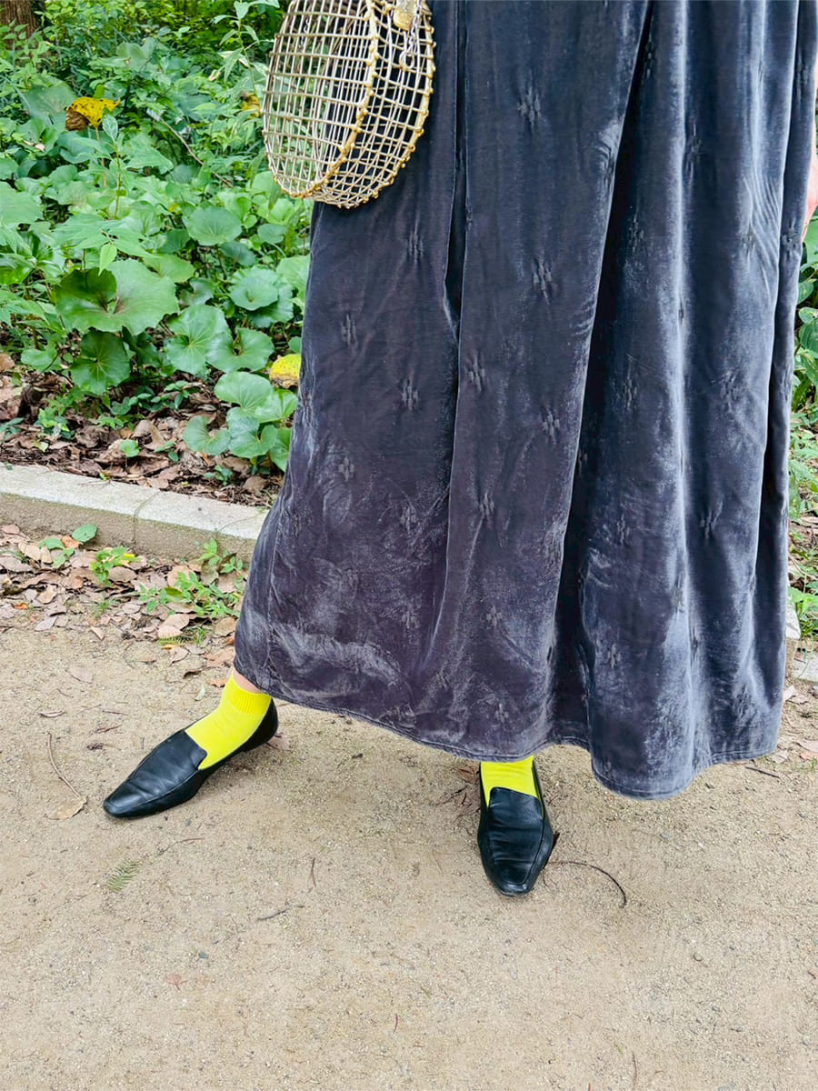 Ample blandさんとは毎年ワクワクする取り組みをさせていただいており、今シーズンはcreationチームの皆さまとインド生産のベロアシリーズを作りました。