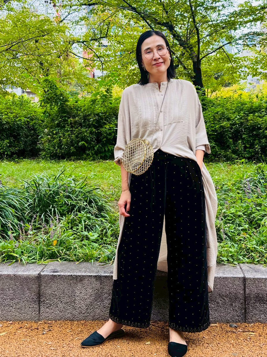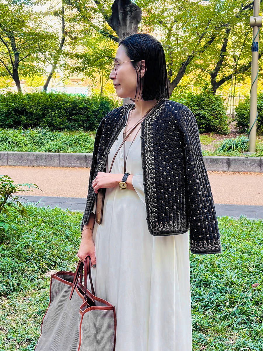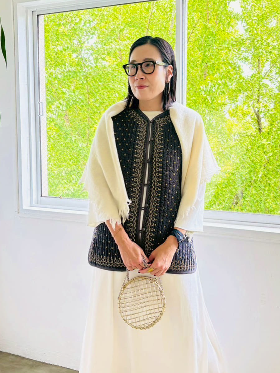 オリジナルの刺繍がパッとスタイリングを華やかに、