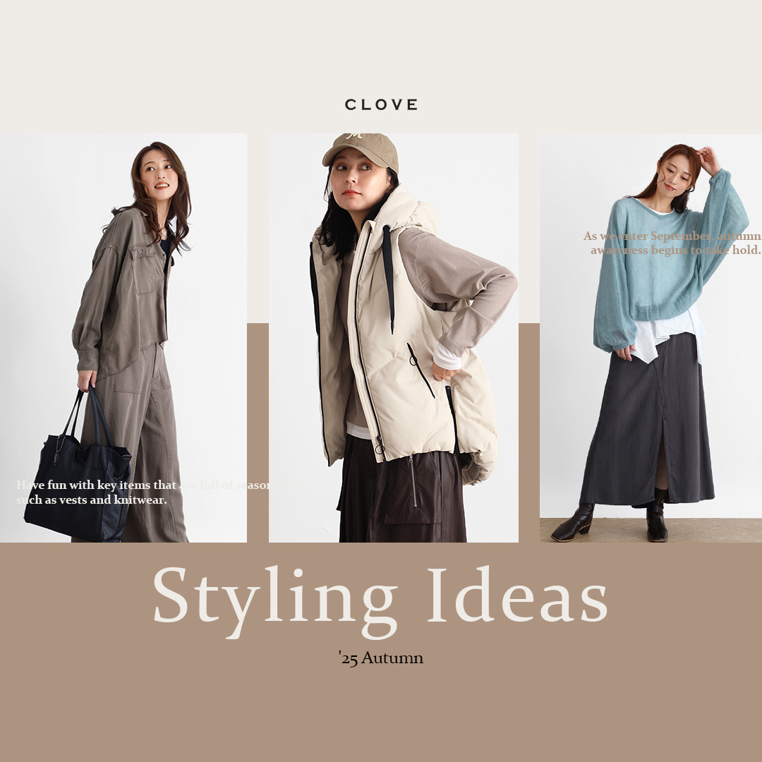 淡いトーンでまとめつつブラウンで全体を引き締めたスタイリング。