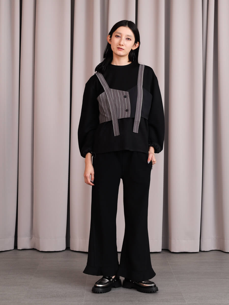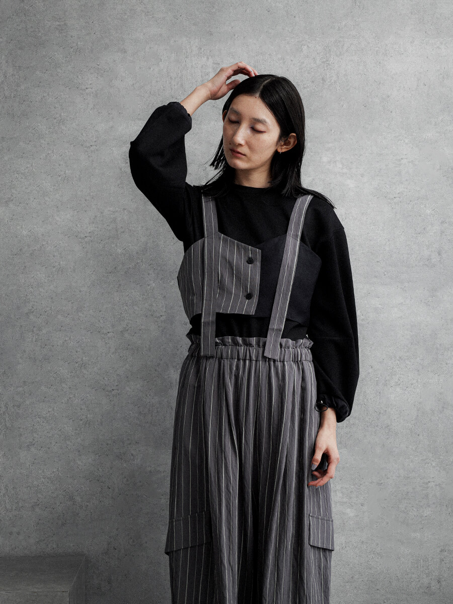 03 サスペンダー付きならではの着こなしが楽しめるワイドパンツ。 シンプルなトップスと合わせた主役コーデはもちろん、 |
