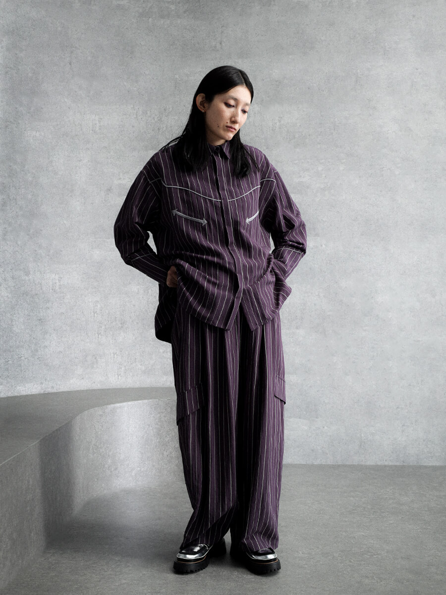 01 配色で仕上げたアローポケットデザインがアクセントになる、 DARK PURPLE |