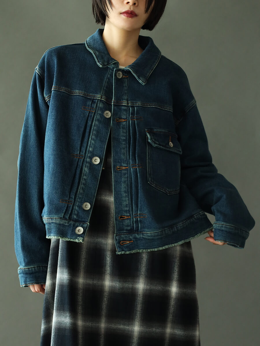 着るだけでこなれ感を演出する、ショート丈のデニムジャケット。