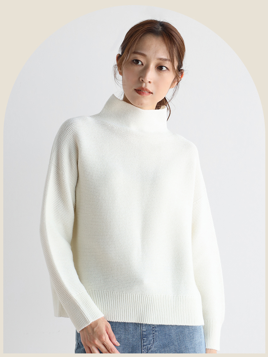 ボトルネックウールガーターニット