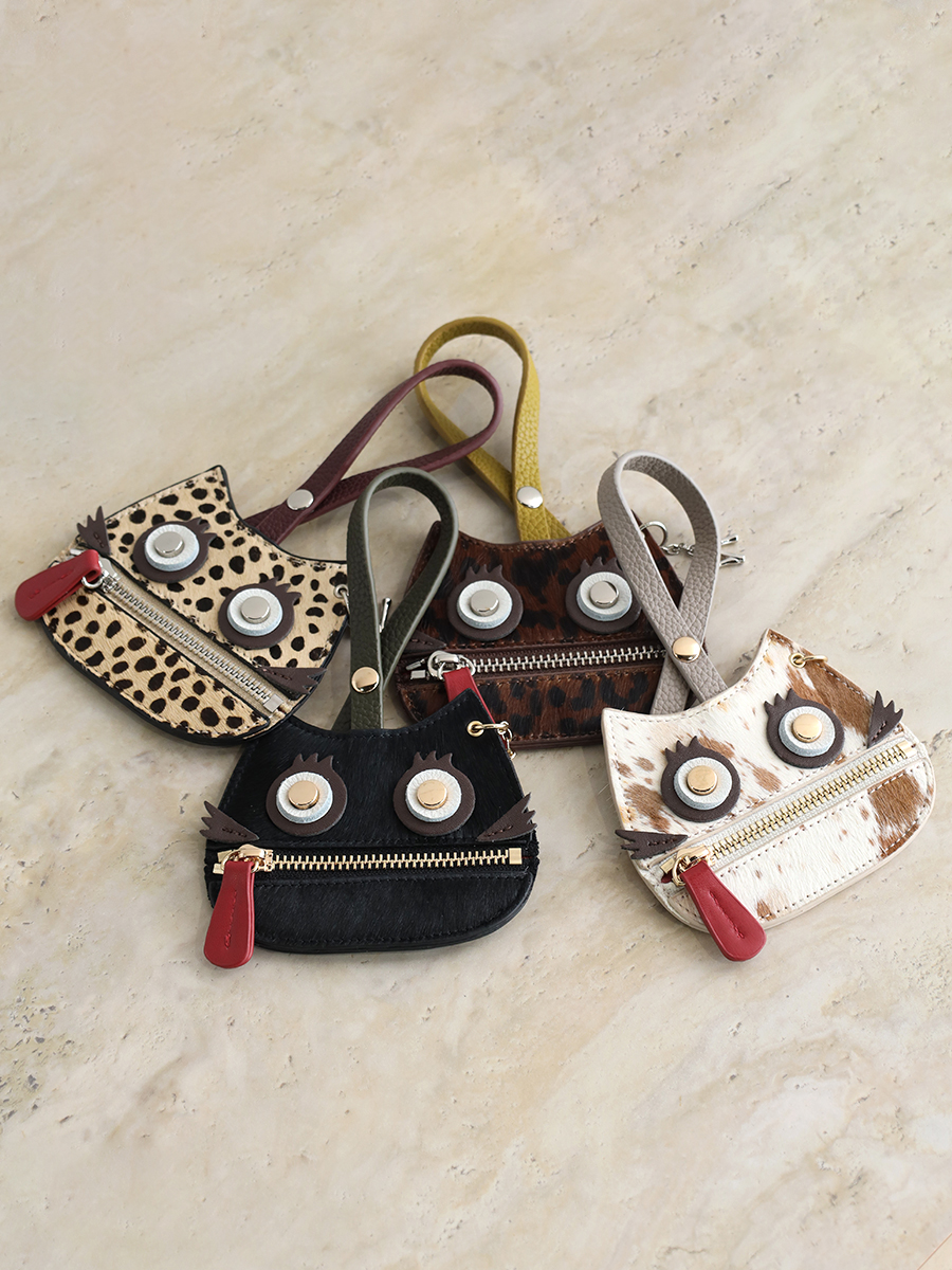 思わず目を引く愛らしいデザインで、バッグや鍵、ポーチなど、
