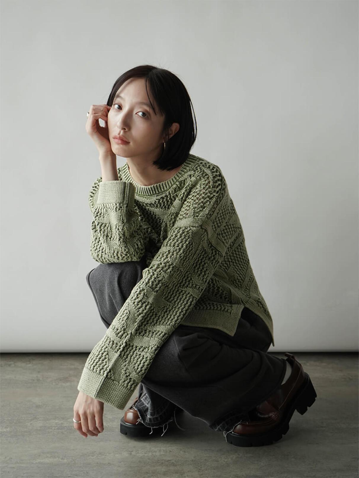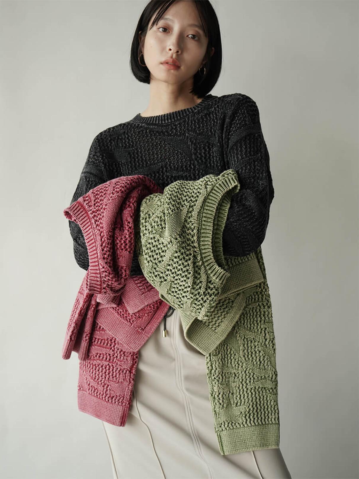 | リーフジャガード透かし編みニット ¥12,000 |