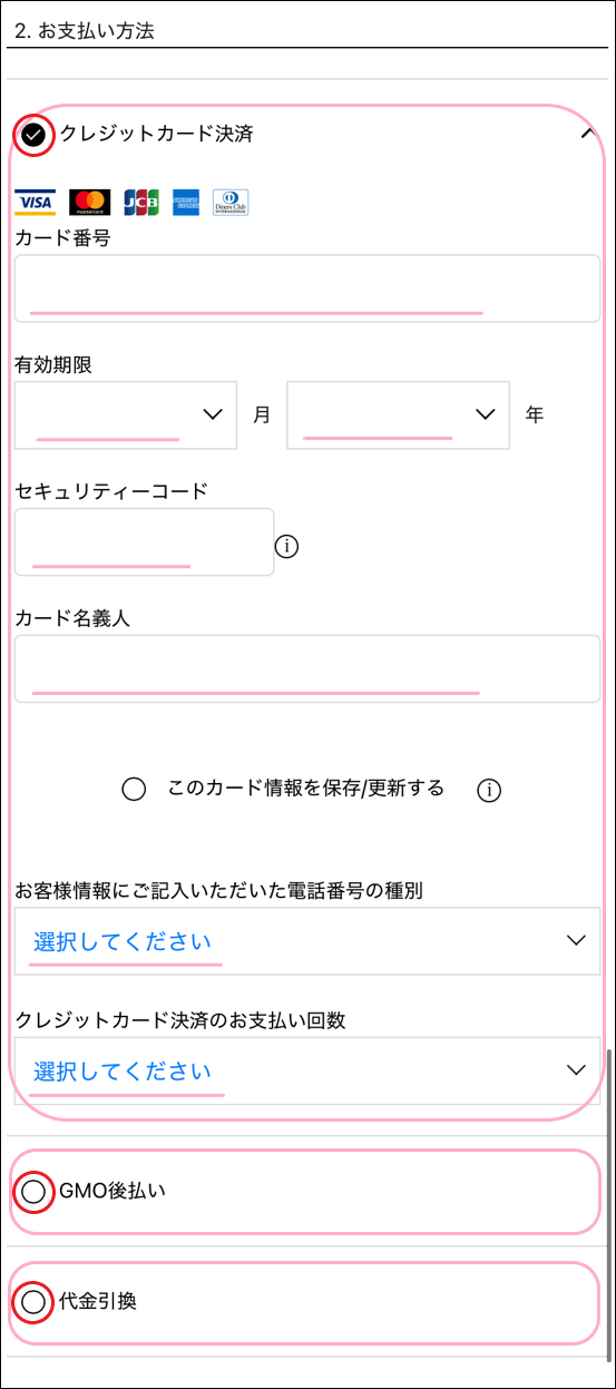 お届け先の変更をご希望の場合は、「クレジットカード決済」をご選択ください。