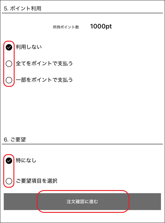 お支払い方法やお届け先やお届け時間のご希望、お支払い方法、ポイント利用をご選択ください。
