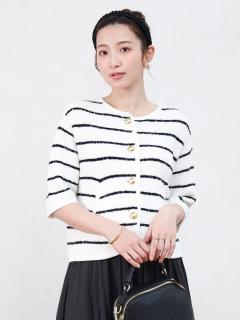 表情のあるボーダー柄が目を引く、上品カジュアルなニットカーディガン。
