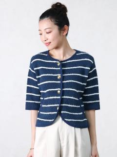 ハーフスリーブボーダーニットカーディガン