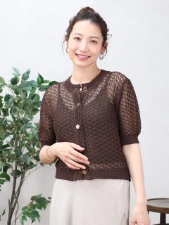 立体感のある編地が目を惹く透かし編みカーディガン。