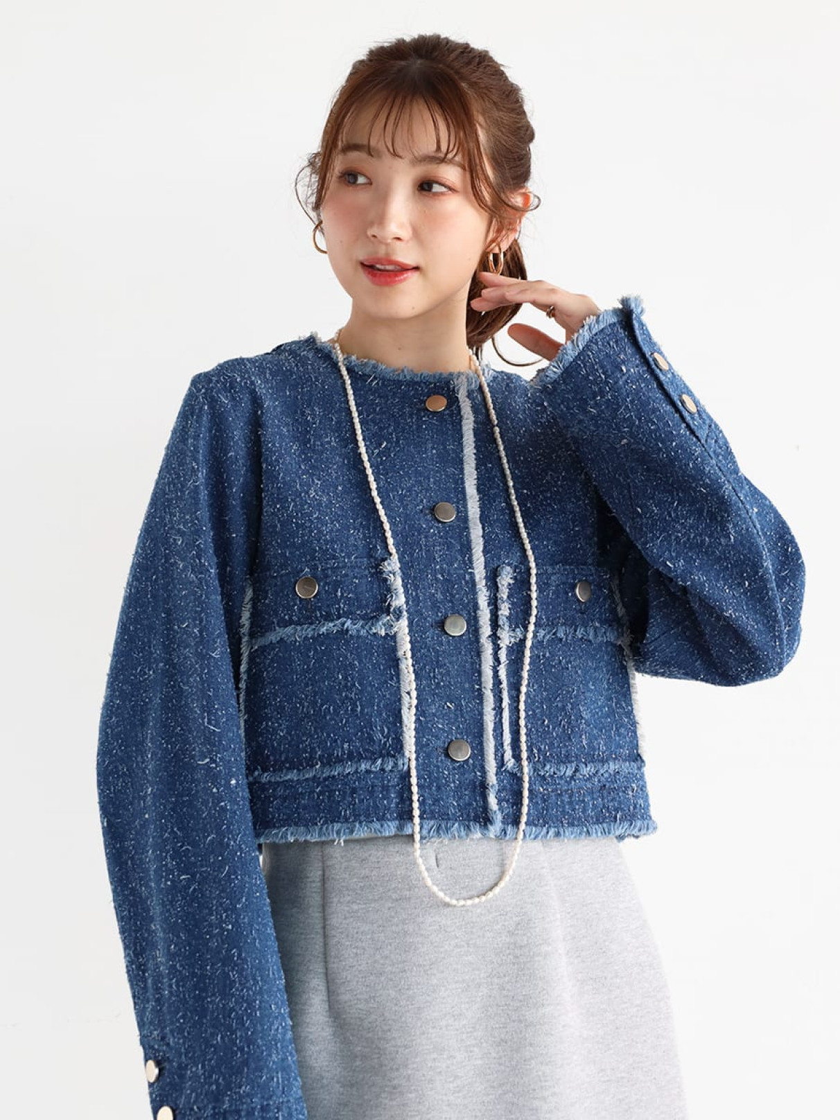 羽織るだけで華やかなスタイリングにきまるデニムジャケット。