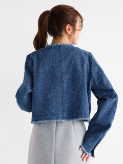 ツイードフリンジノーカラーデニムジャケット