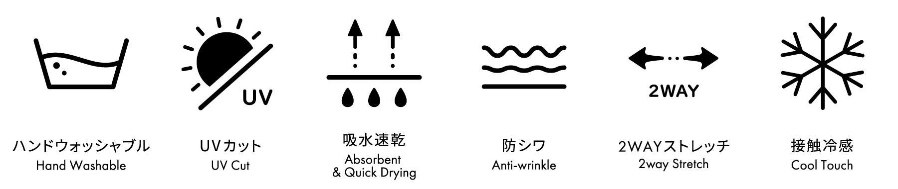 接触冷感・UVカット・吸水速乾・防しわに加え、自宅で洗えるイージーケア仕様。