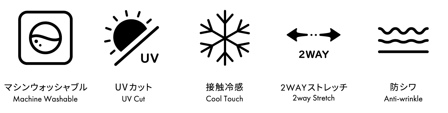 UVカット、接触冷感、防シワ、2wayストレッチといった多機能素材を使用し、快適な着心地ときれいな見た目を両立しています。