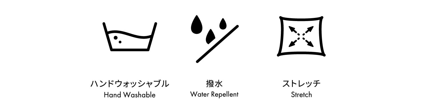 ストレッチ性に優れ、さらに撥水機能も備えているため、お出かけやアクティブなシーンでも快適に着用いただけます。