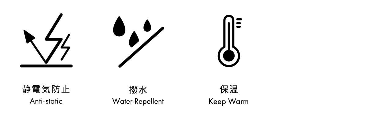 生地には撥水加工・汚れ防止加工・静電気防止加工を施しており、機能性も充実。