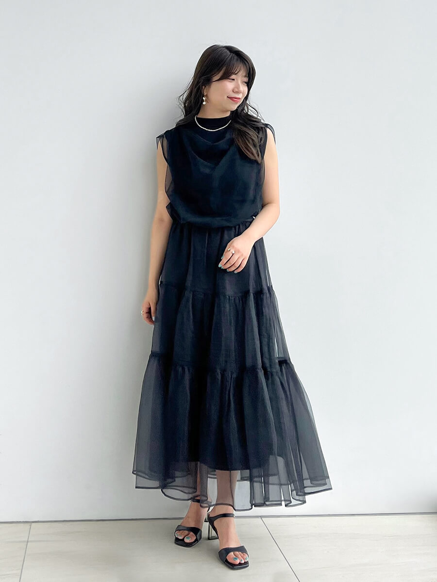 チュールがふわっと重なっていることで、ボディラインを拾いすぎない&腕周りを 程よくカバーしてくれるのが嬉しい◎