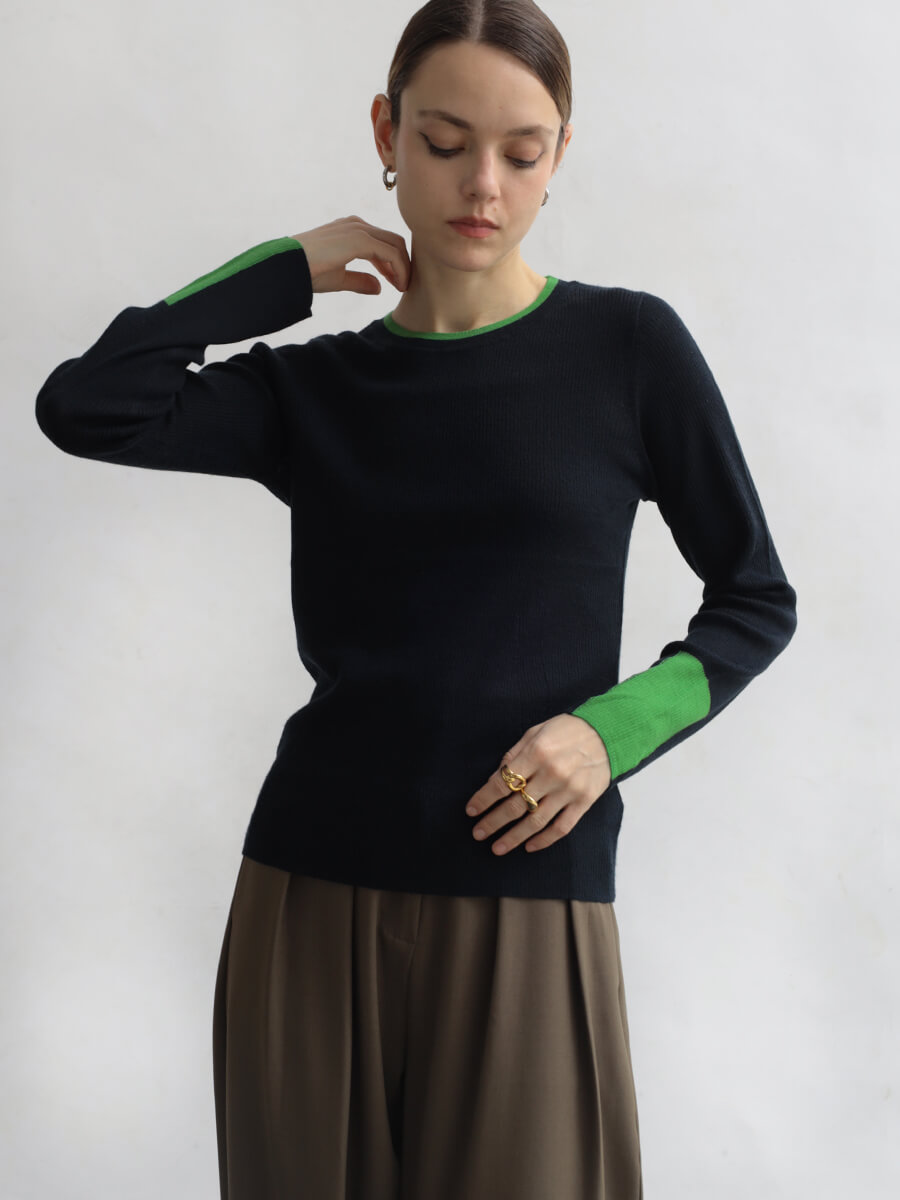 素材が魅了する季節アイテム No.4 ライン配色リブニット |