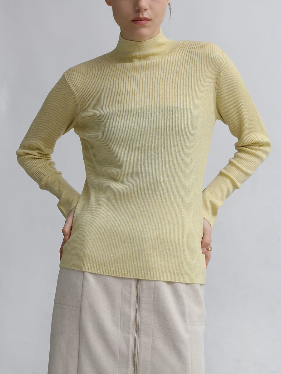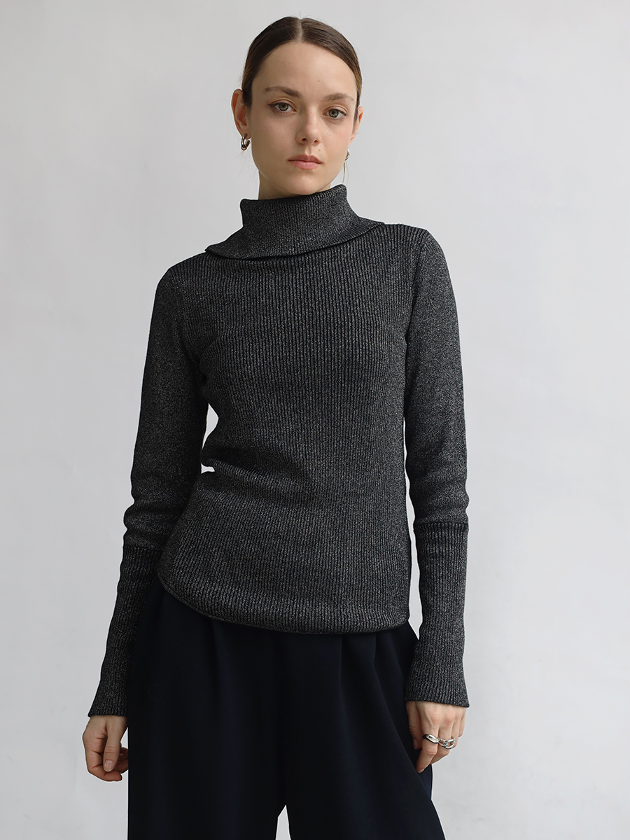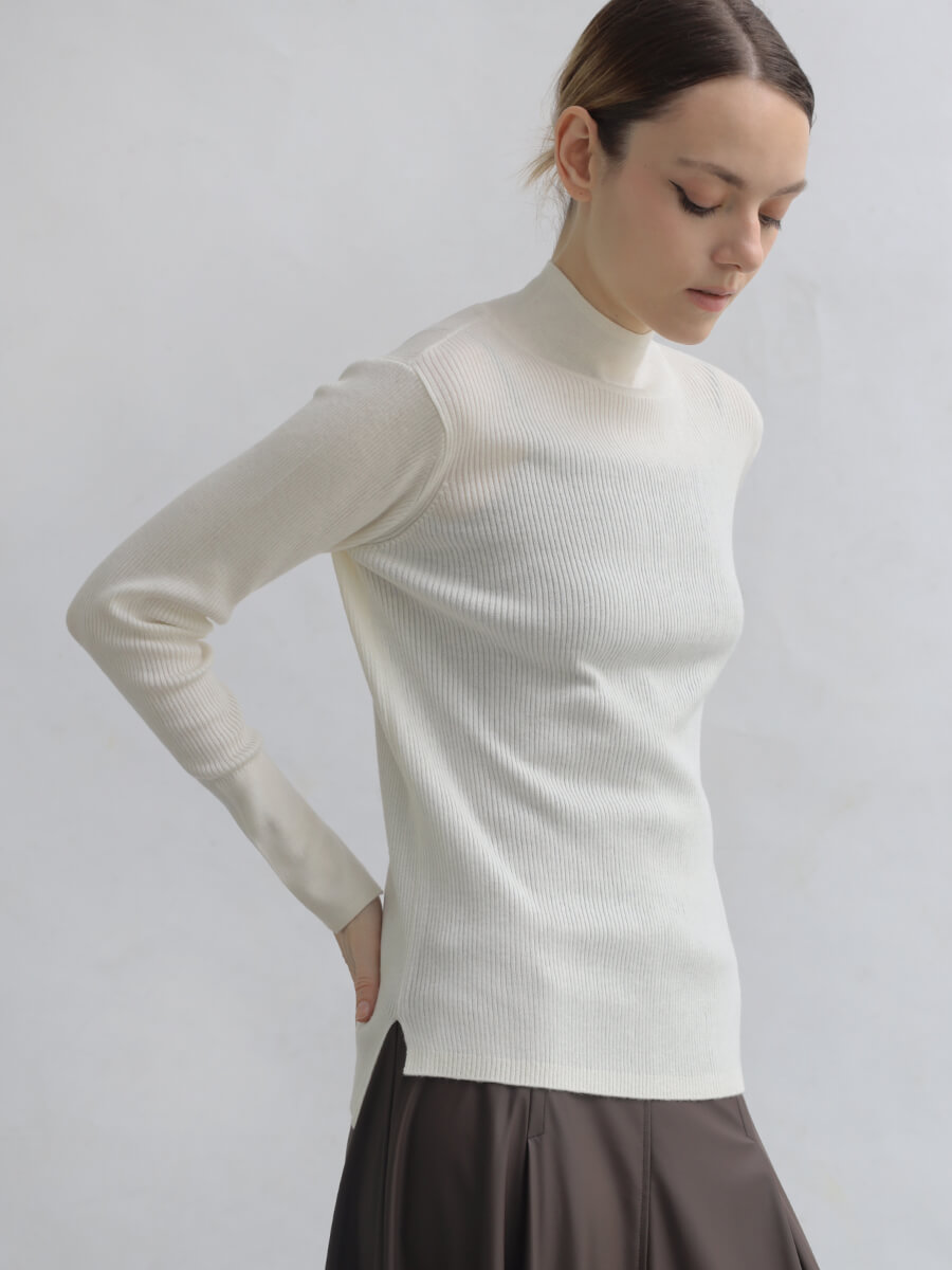 汎用性の高い着回し抜群ニット No.1 ハイネックリブラメニット |