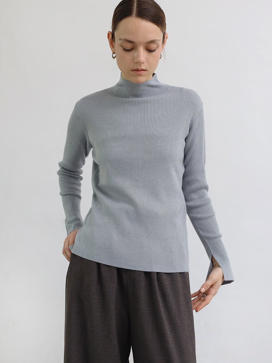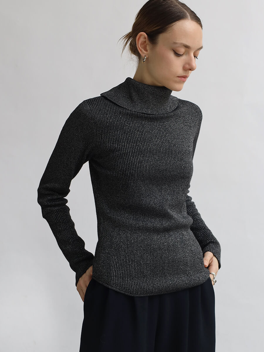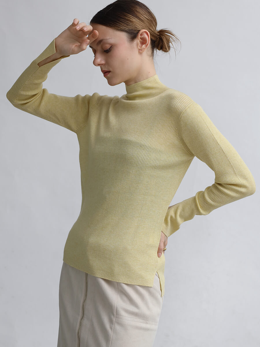 汎用性の高い着回し抜群ニット No.1 ハイネックリブラメニット |