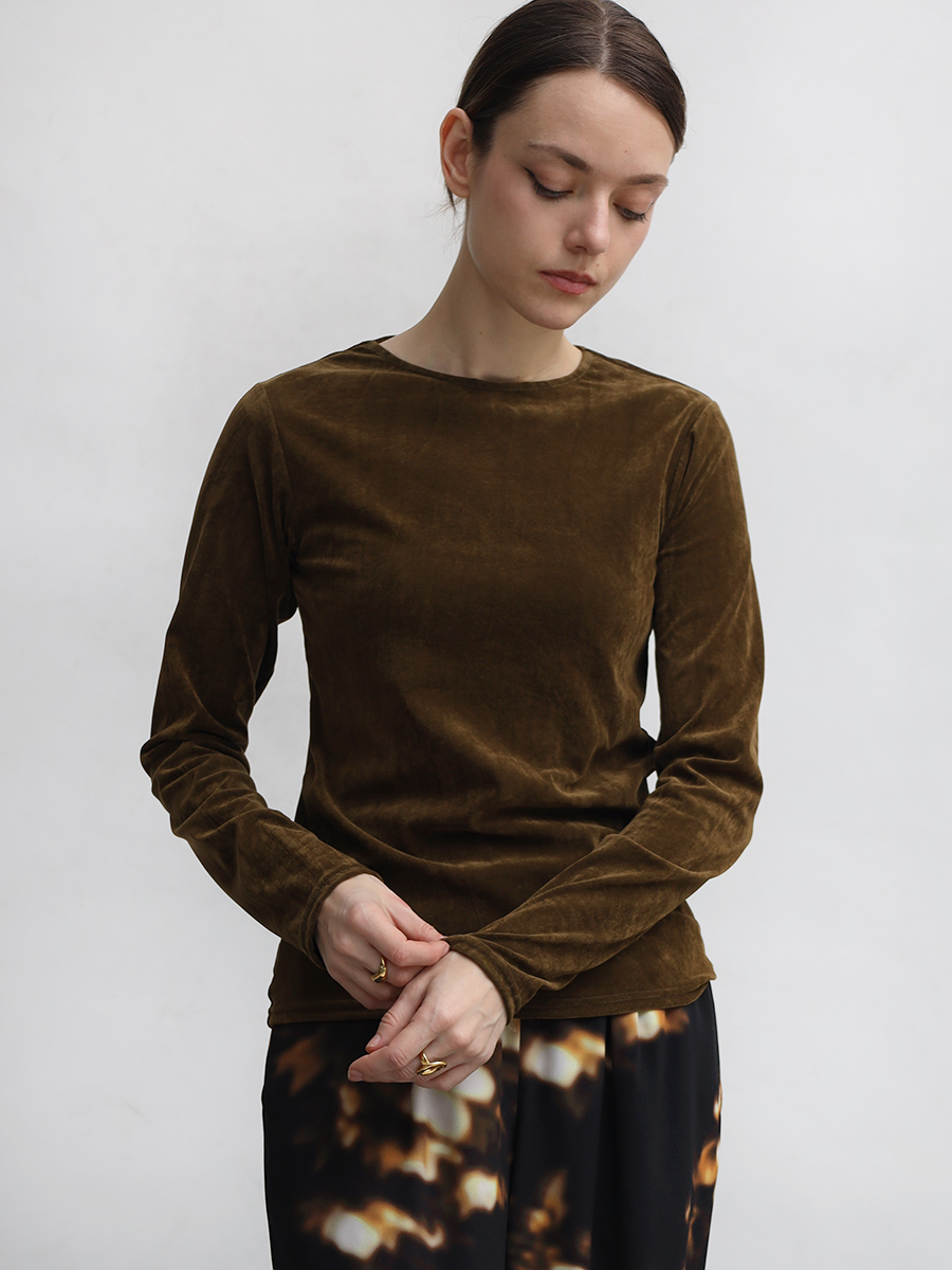 素材が魅了する季節アイテム No.3 フロッキーベロアクルーネックトップス |