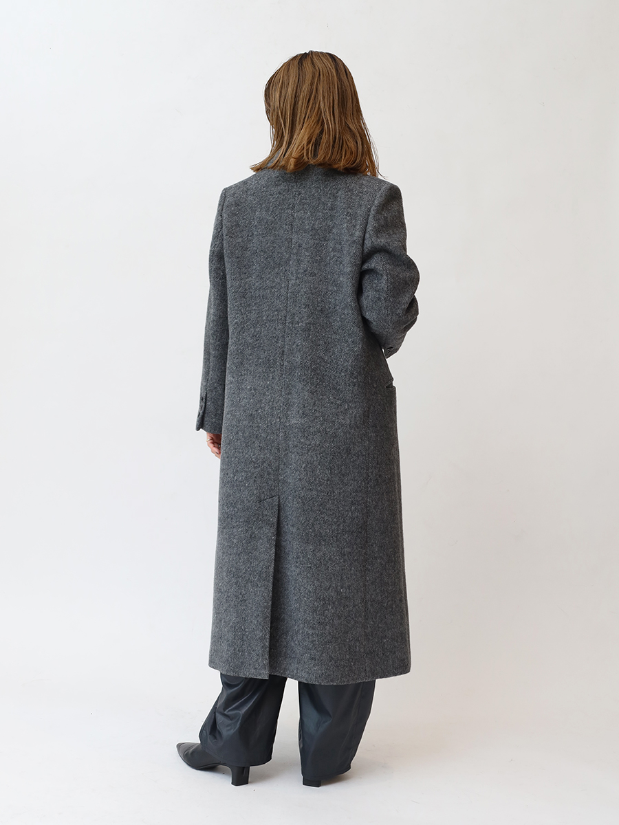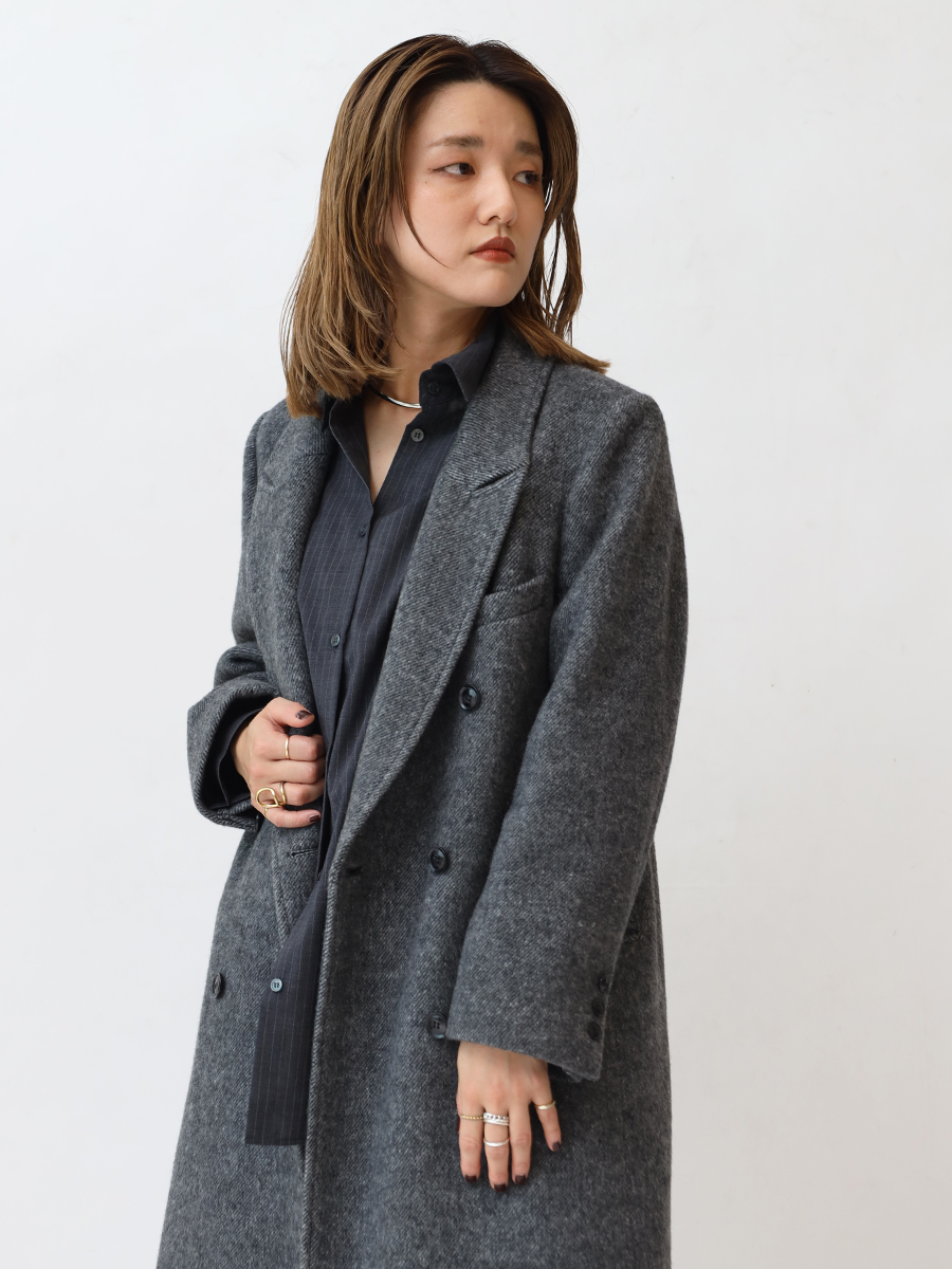 上質な尾州産素材のコート。2色のカスリ染め糸を