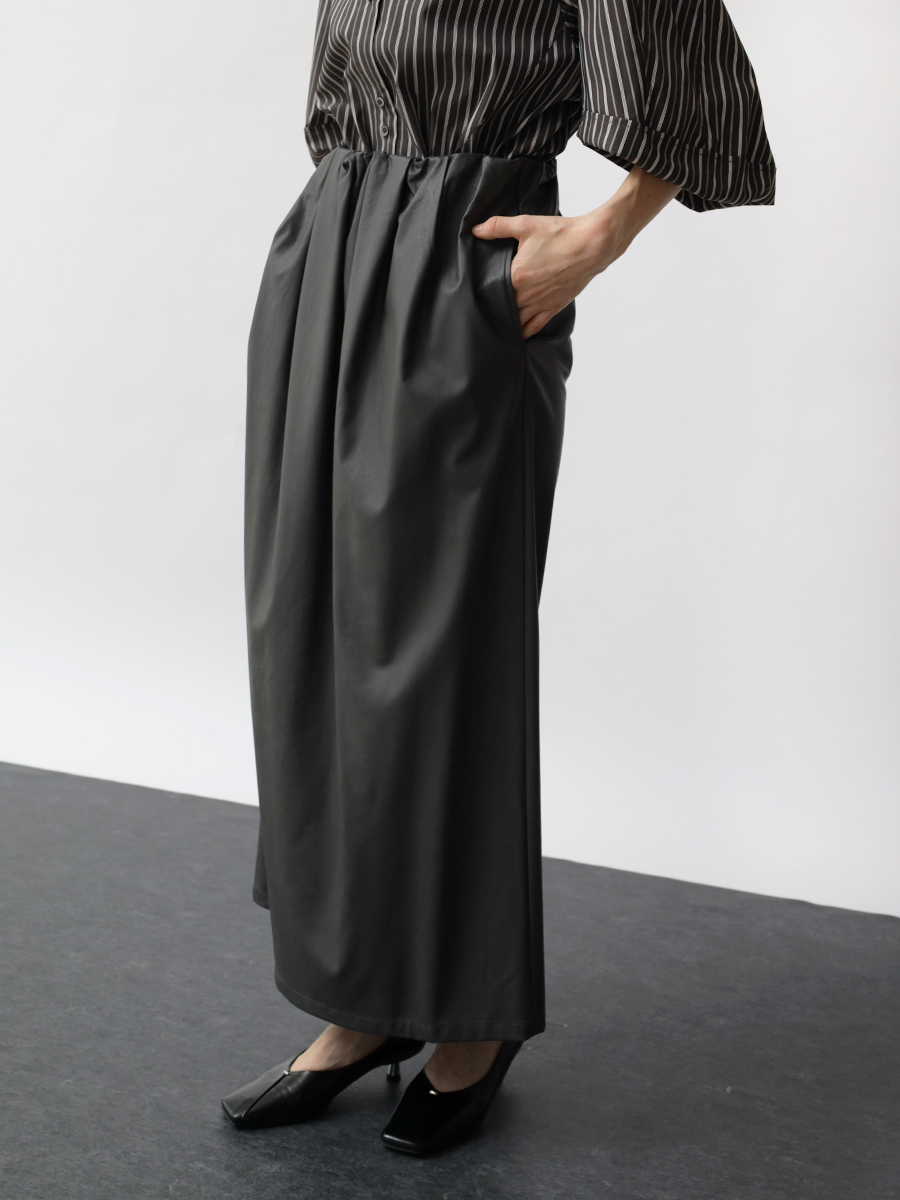 すっきりと縦長のロング丈に、モードな色合いと