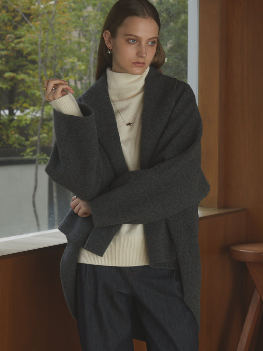 作り上げたこだわり素材のガウンコート。