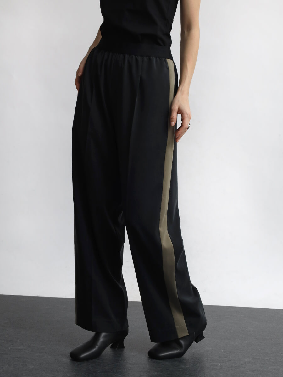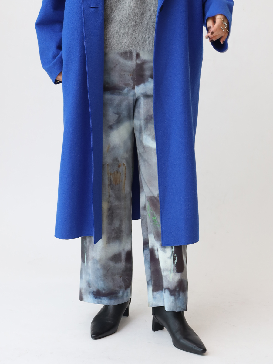 仕立てつつ、あえて幅を寄せ、ラフなニュアンスを