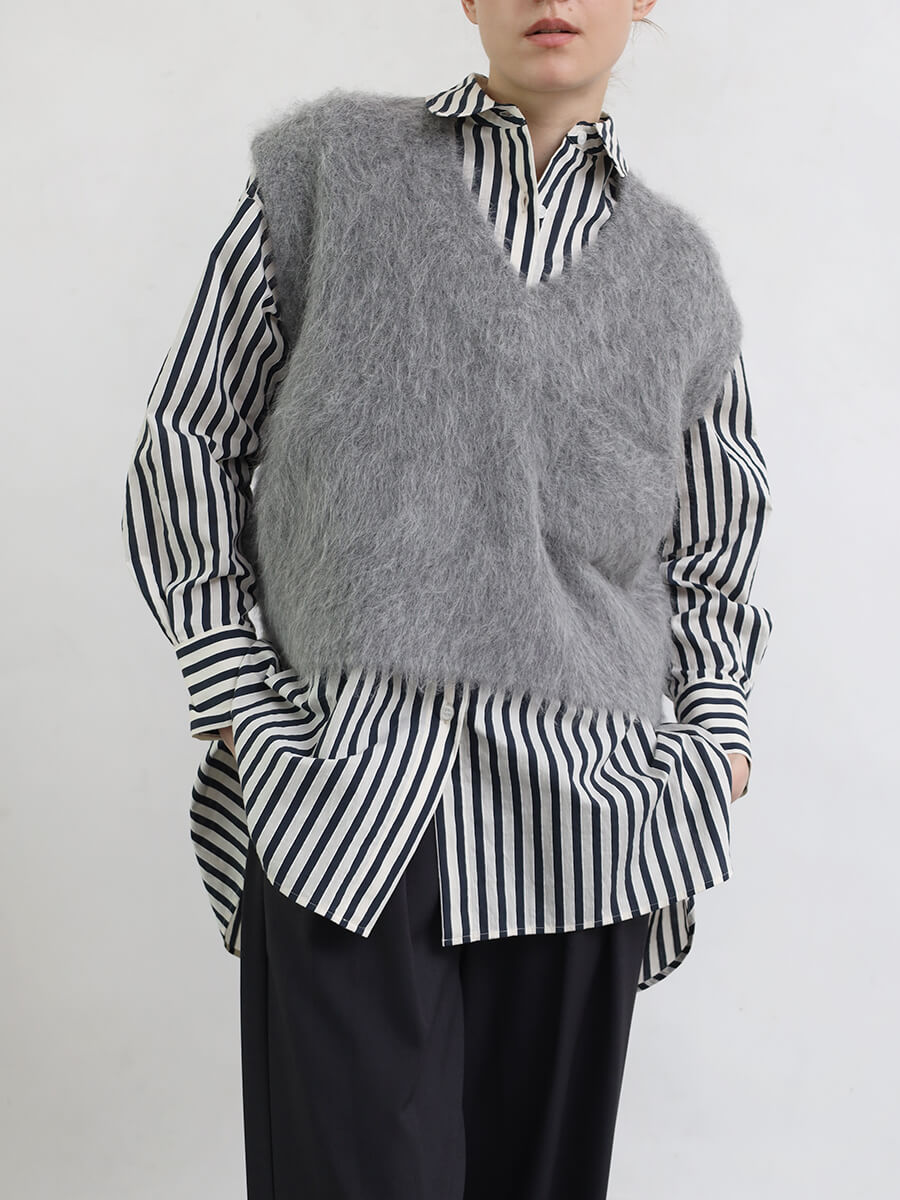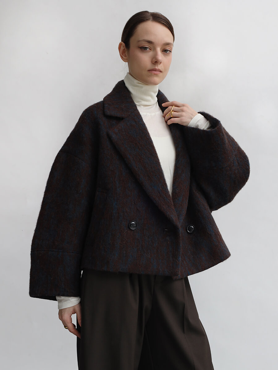 襟以外のディテールをあえて足さずに仕上げることでAgaらしいミニマルな印象をキープします。