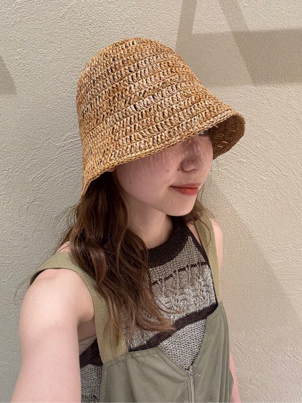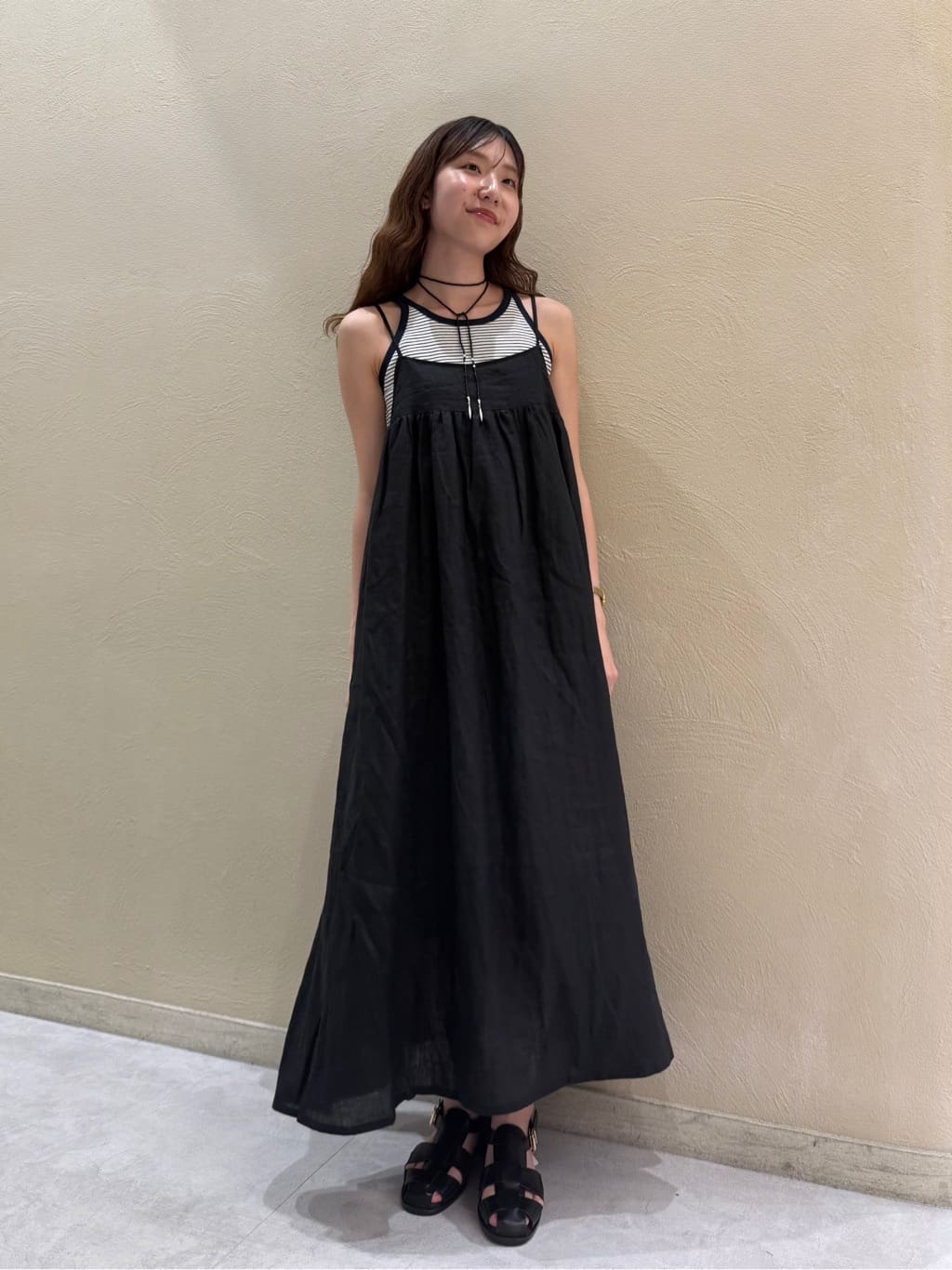 リネンのキャミワンピースは身幅が広く、