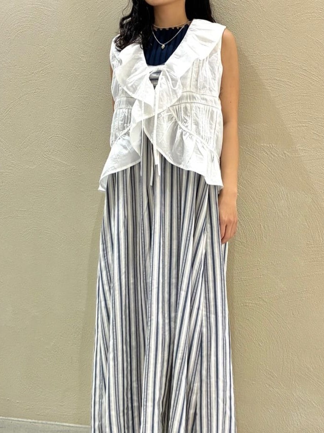 フリルジレを重ねて着るとまた違った雰囲気をお楽しみいただけます☺️