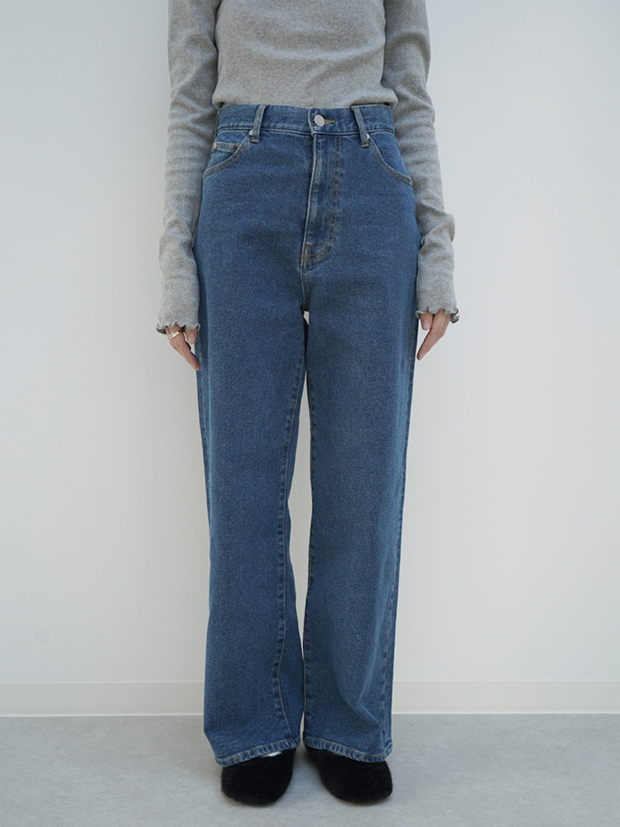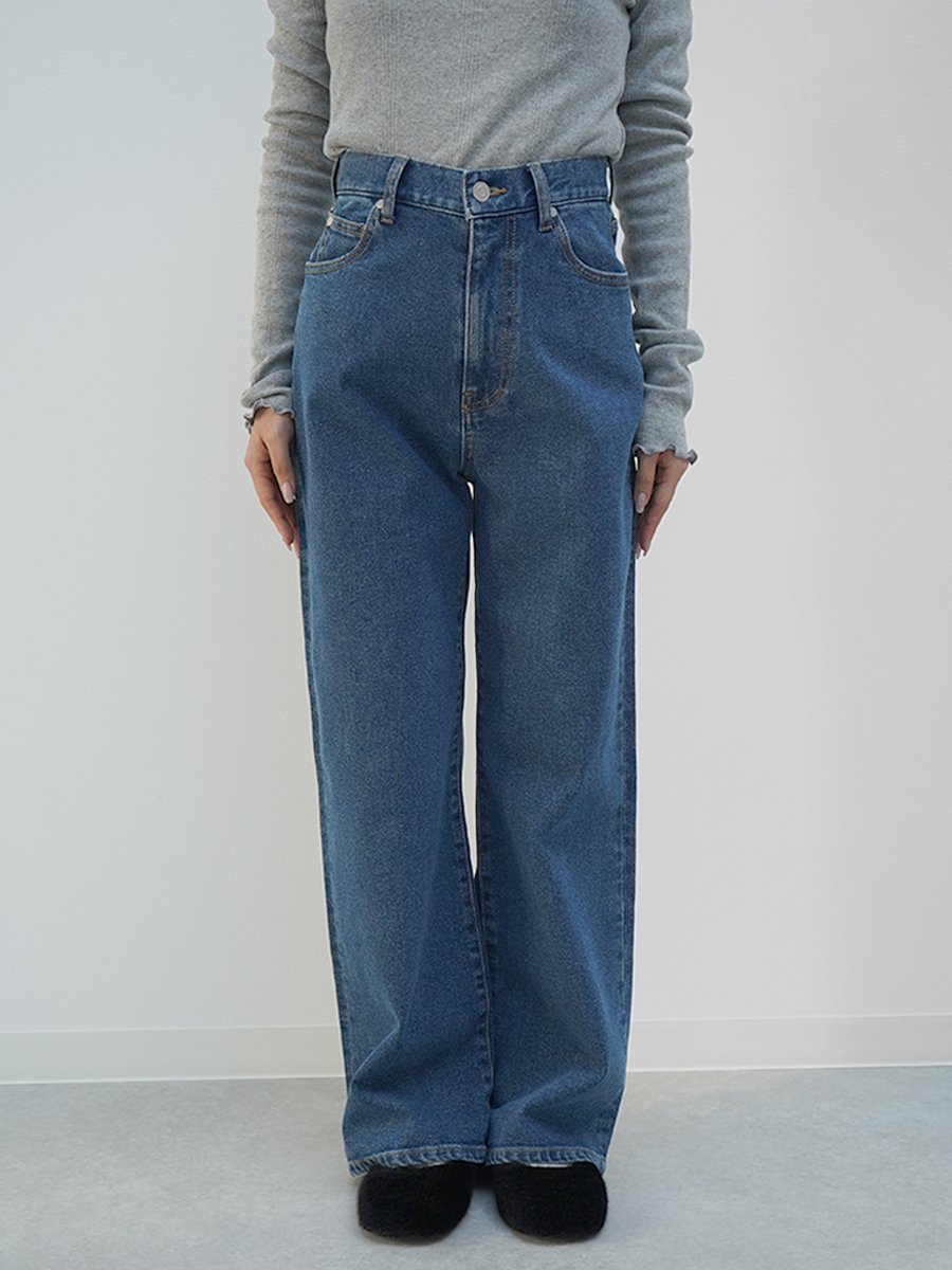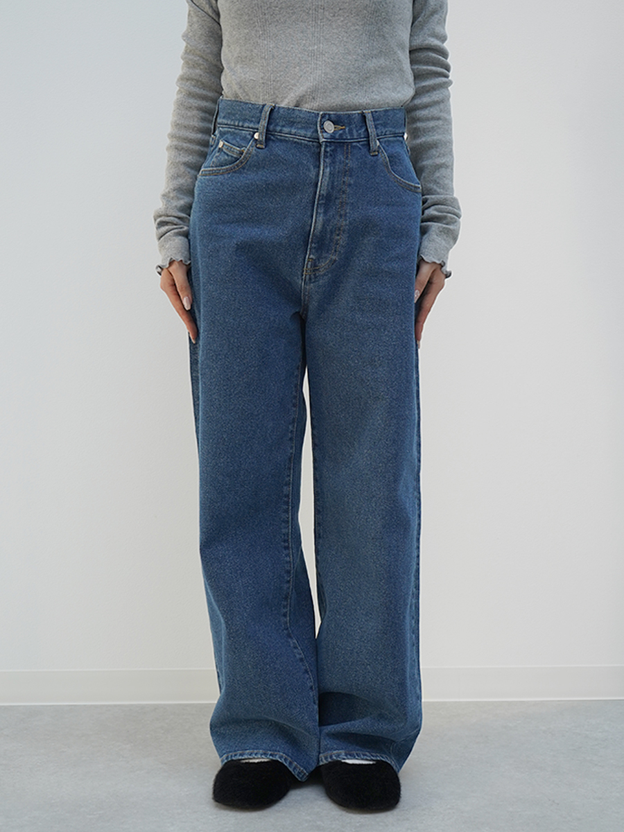 ゆとりのあるワイドなシルエットが、抜け感を演出するデニムパンツ。 股上はやや深めのハイウエストでスタイルアップをアシストしてくれます。 腰まわりはコンパクトなサイズ感にすることで、すっきりとしたバランスに。 デイリーに使いやすいベーシックなデザインでシーズンレスに活躍してくれる万能アイテムです。