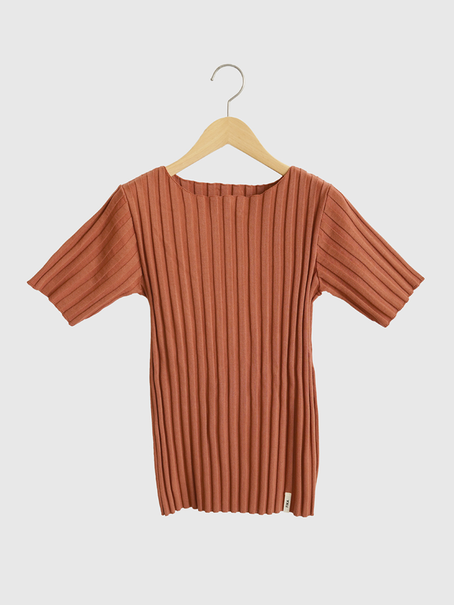 Wide rib short sleeve knit pullover