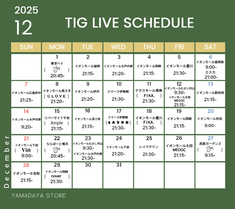 TIG LIVE SCHEDULE