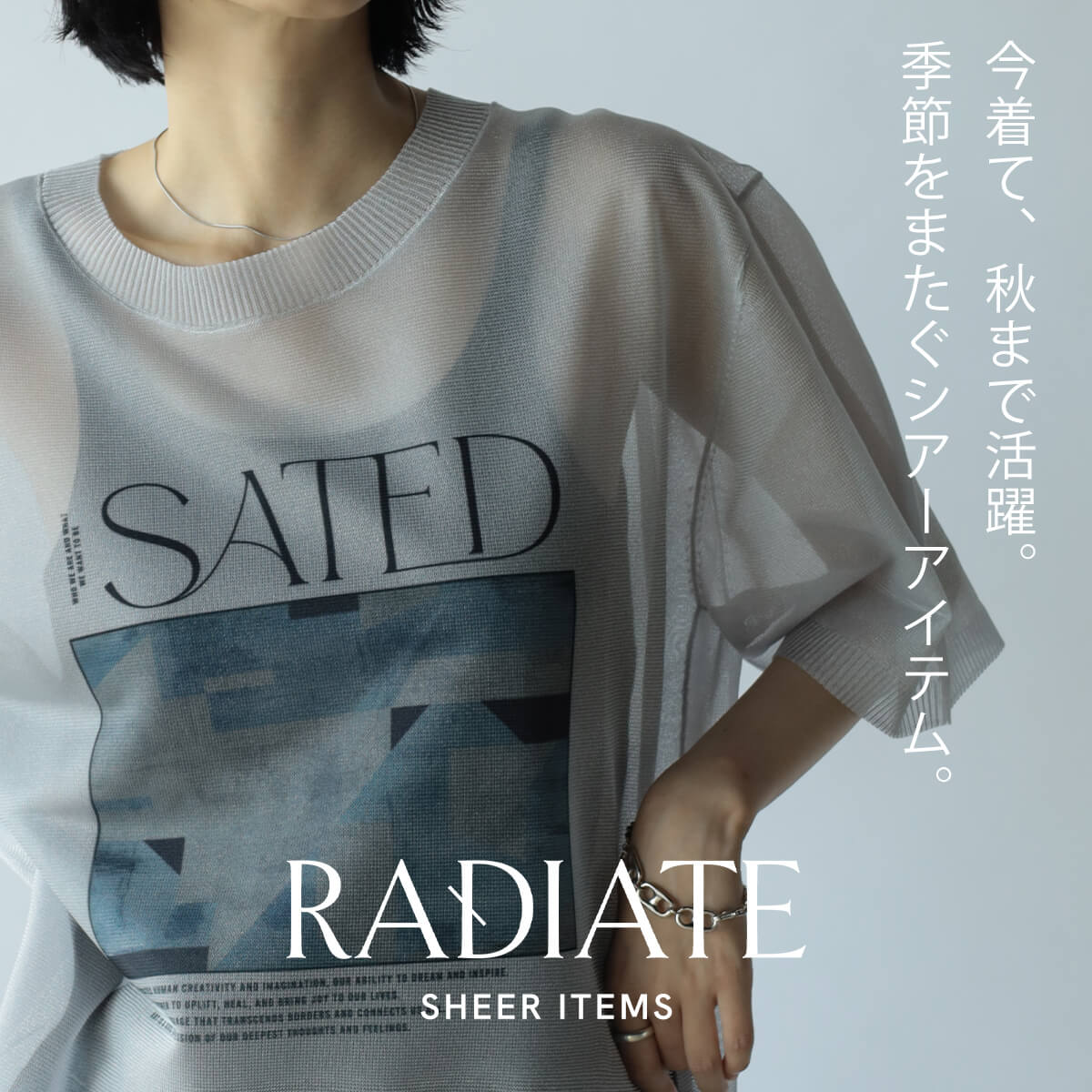 シアーの柔らかな抜け感が上品さを演出するトップス。硬めのテクスチャで、しわ加工のあるふんわりとした生地感。袖と襟ぐりにはリブ素材が施されたデザインで、カジュアルさもプラス。ルーズなシルエットなので、ボディラインを拾いにくいのもポイント。タンクトップやキャミソールとの合わせはもちろん、Tシャツやキャミワンピースとのレイヤードスタイルもオススメです。