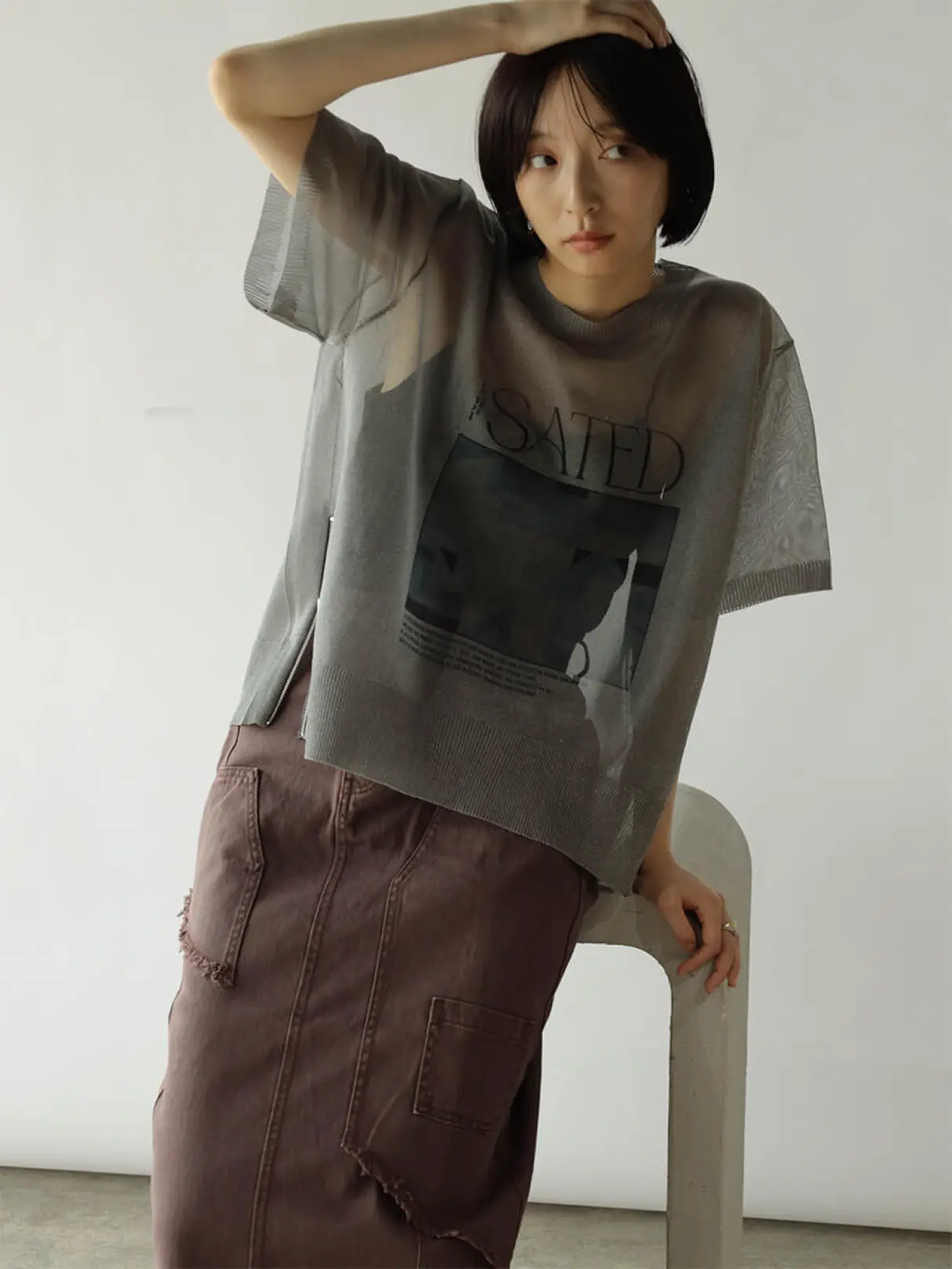 メッシュの抜け感がこなれ感を演出するプリントデザインプルオーバー。程よい硬さとハリ感のあるメッシュニット生地を使用。程よく存在感のあるプリントデザインなので、大人のスタイリングに◎サイドのジップを開けて、前だけボトムスにインするのもおすすめ。キャミソールやTシャツなどレイヤード次第で様々な雰囲気のコーデが楽しめます。
