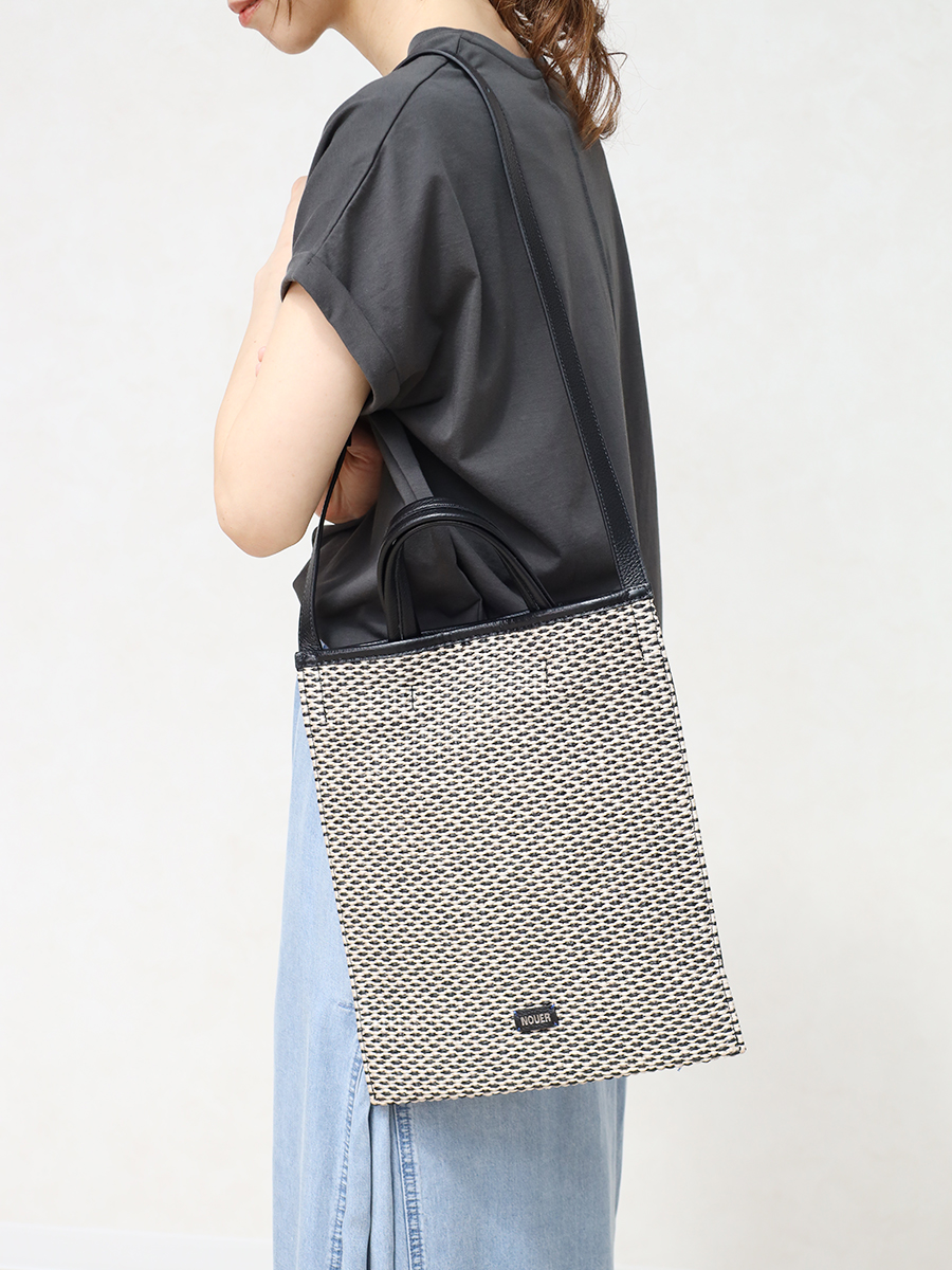 特徴的な輪で出来たハンドルと、取り外し可能なショルダーが付いた2way仕様。