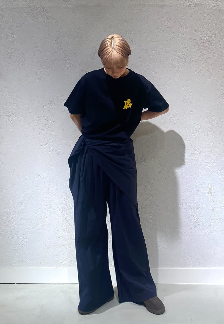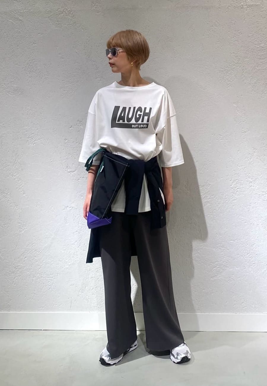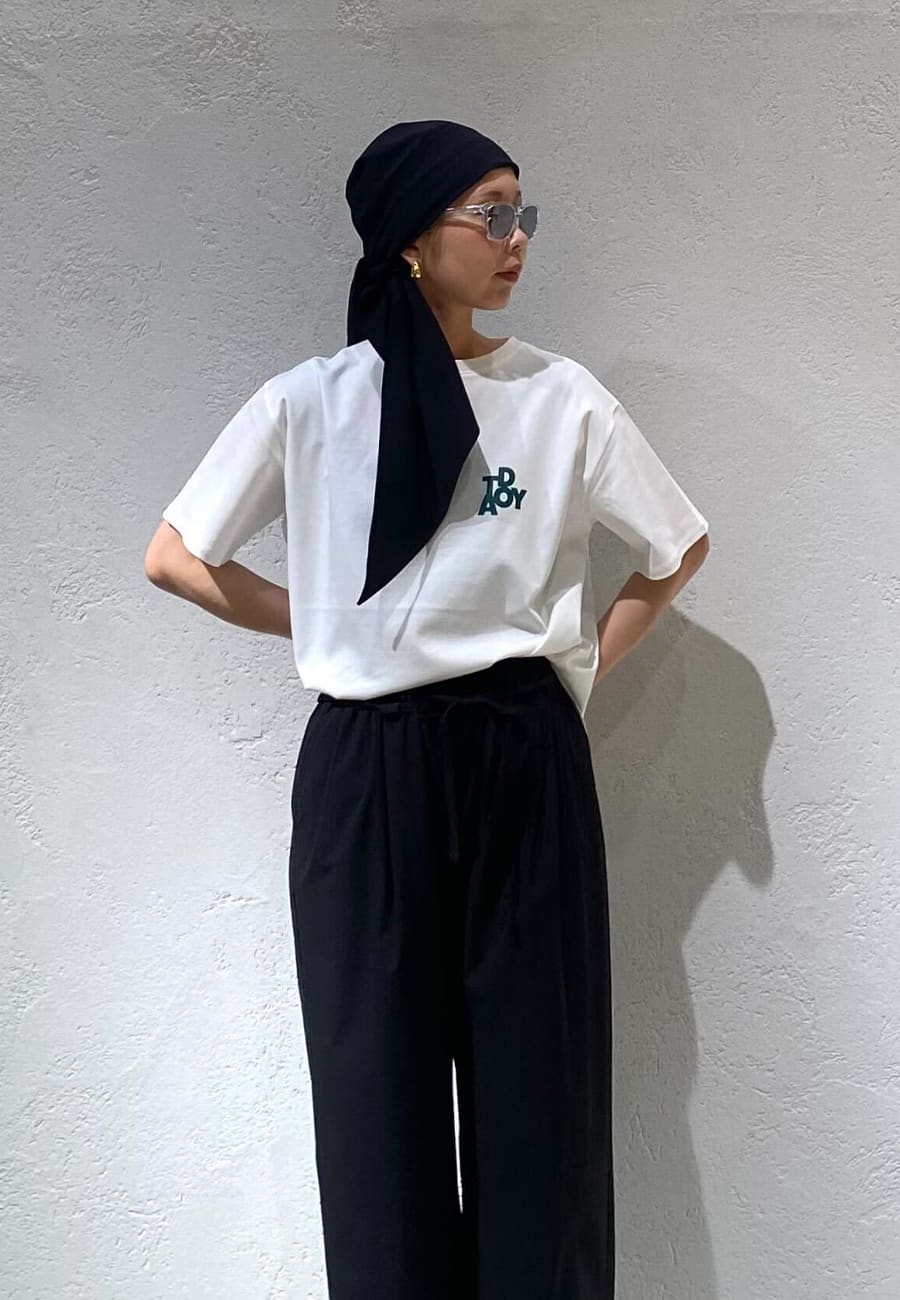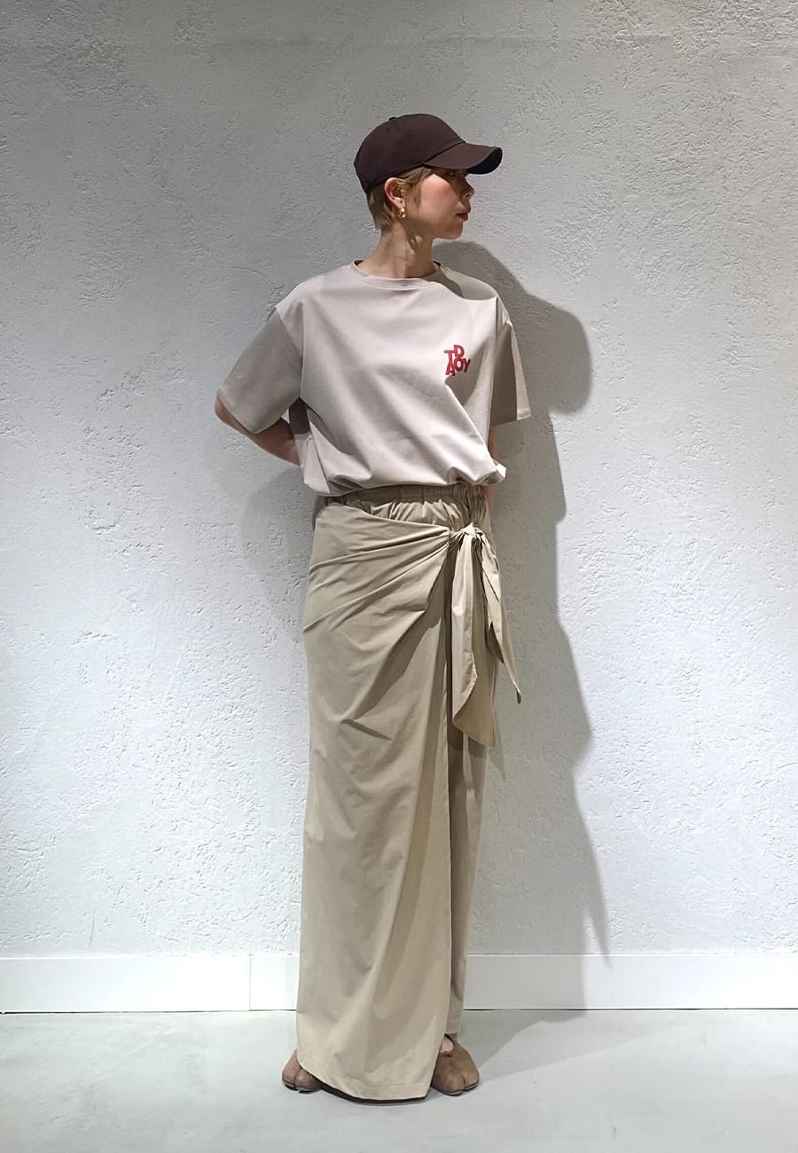 オーバーサイズに、大きめなロゴなので 暑い季節に一枚で着てサマになるこちらの Tシャツは、 大人が取り入れやすいよう ボディとプリントのコントラストがつきすぎないような配色を意識しました。 そうすることでメンズライクになりすぎず 様々なスタイリングに 取り入れていただけるかと思っています。 着丈、袖丈と体型カバーにもぴったりで サイドスリット入りなのも ボトム選びを楽しめるポイントです。