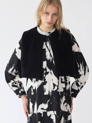 羽織り、小物を黒で統一しモードな雰囲気で合わせました