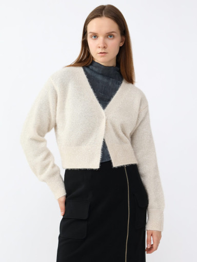 ラメカーディガンでホリデー気分up✨ワンピースにはショート丈の羽織りがバランス良くまとまります。