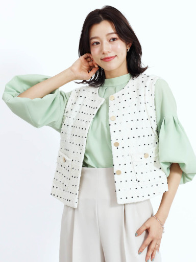 2025.02.24ドットをモチーフにした ショート丈のツイードベスト カットソーにデニムなどカジュアルスタイル などでの着回しも◎ とろみのあるパンツはスカートのような 女性らしいシルエットと着心地どちらも叶えてくれる優れもの。ほどよい厚みなので 白でも透けないです。小柄さんにもオススメな 丈感です。インナー合わせのブラウスもとろみがある生地感。ギャザーネックが華やか^_^ オールホワイトで、式典やお食事会 オケージョンシーンでも活躍なコーデ♪春コーデFENNEL低身長コーデお気に入り登録 着用アイテムこのスタッフの他のコーディネートLASUD Vinサンロード青森150cmLASUD Vinサンロード青森150cmLASUD Vinサンロード青森150cmLASUD Vinサンロード青森150cmVIEW MOREこのブランドの他のコーディネートMEDOCスマーク伊勢崎146cmMEDOCイオンモール甲府昭和158cmLASUD・PetitMaisonイオンモール山形南165cmLASUDイオンモール草津163cmVIEW MORE店舗情報住所:〒0300845 青森県青森市緑3丁目9-2サンロード青森2FMAP