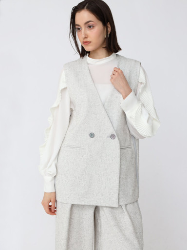 モノトーンのベーシックコーデに、ツイードジレで綺麗目スタイリング◎