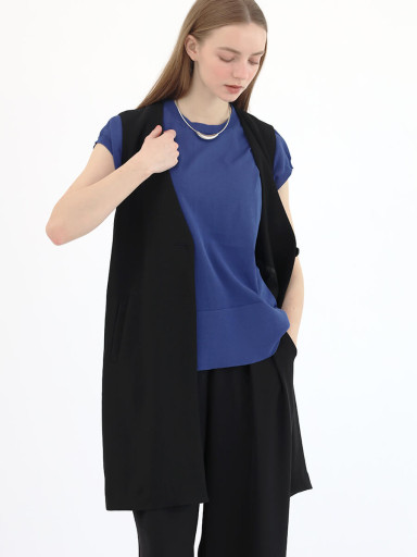 腰回りが隠れる丈と深めのスリットですっきりシルエットに◎