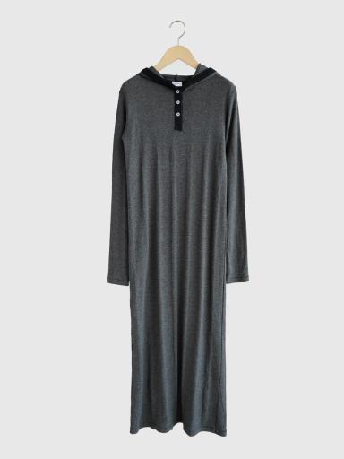 甘編みニットワンピースをメインにフーディーワンピースとデニムジャケットでカジュアルに崩したコーディネート。👖