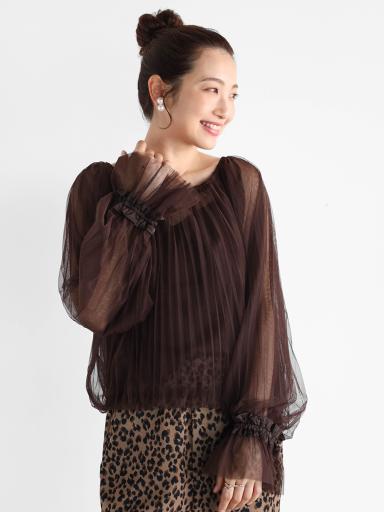 程よい透け感とふんわりチュールが大人フェミニンなブラウスꔛ